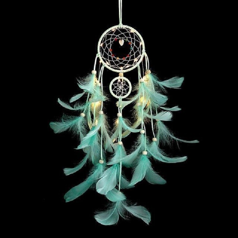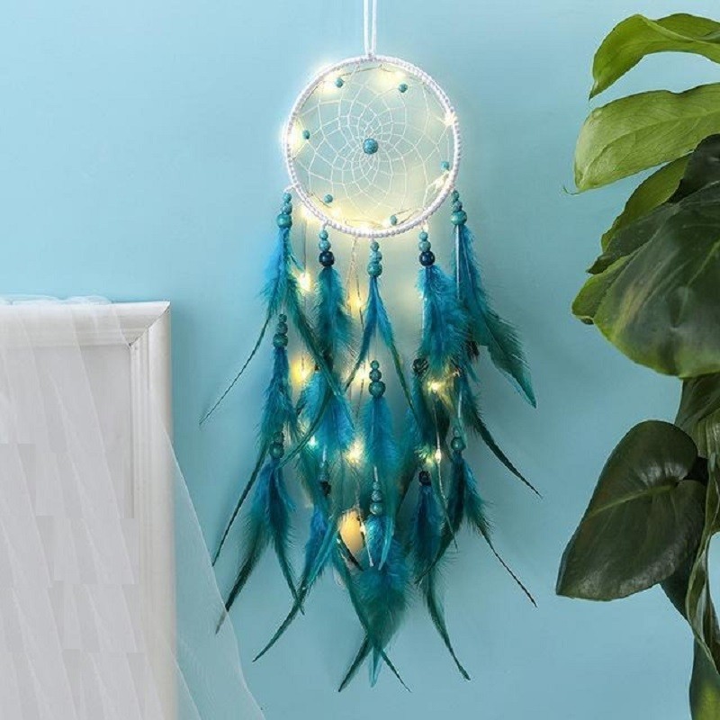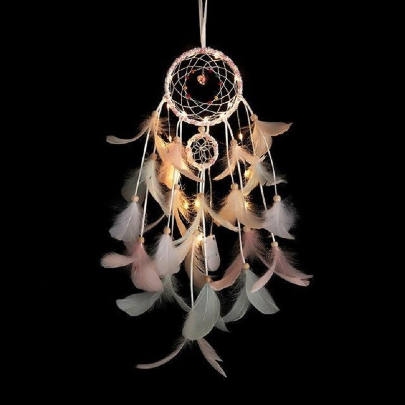 Material: couro sintético, contas, penas