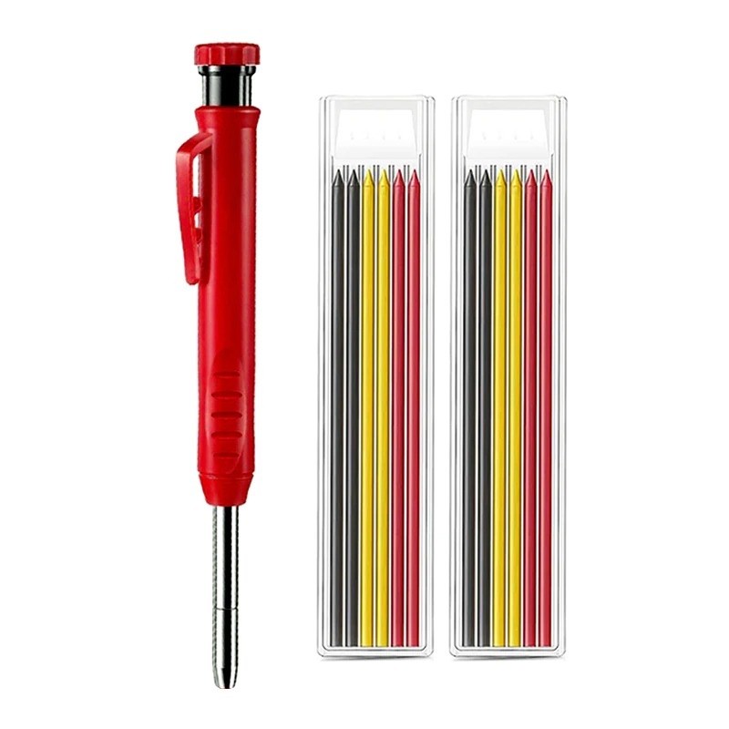 Lápis que se adapta bem à mão. Permite uma marcação precisa em locais de difícil acesso. Inclui também um afia. É um excelente auxiliar no trabalho.