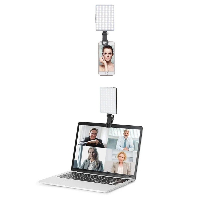 Página inicial Página inicial Fotografia, áudio-vídeo, gaming Acessórios de fotografia LED luz suplementar com clipe para telemóvel 2000 mAh 3 modos de iluminação Brilho ajustável USB-C Micro USB Maquilhagem Vídeo Selfie Luz para telefone