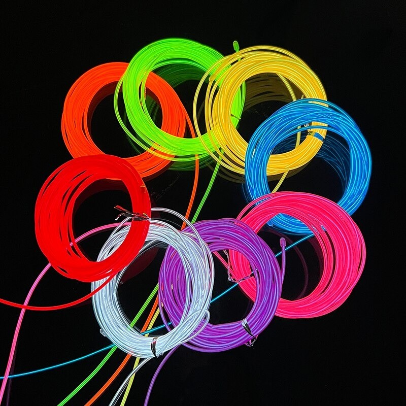 A luz de néon é um fino fio de cobre revestido de fósforo, que brilha com uma luz contínua. É bem flexível, o que a torna ideal para decorações flexíveis. Pode usá-la para decorar a sua roupa, bicicleta, interior do carro, quarto, mesa e outras coisas que gosta. Com o fio também é possível criar letreiros luminosos. O fio é à prova de água, mas a caixa de alimentação e as ligações não são.