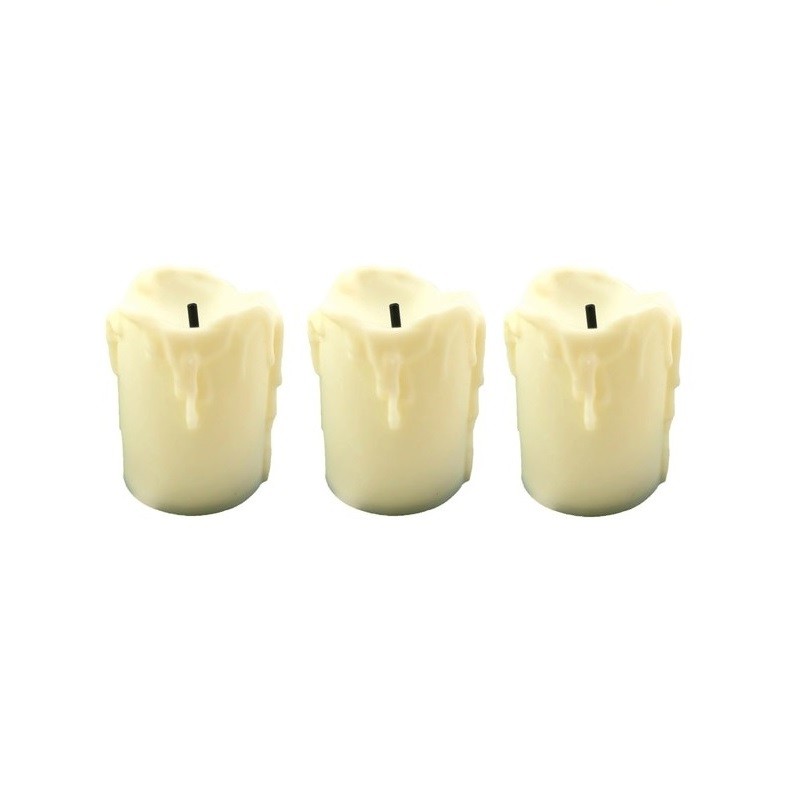 Conjunto de velas elétricas. Dimensões: 3,6 x 5 cm. Efeito de chama a oscilar. Descrição completa