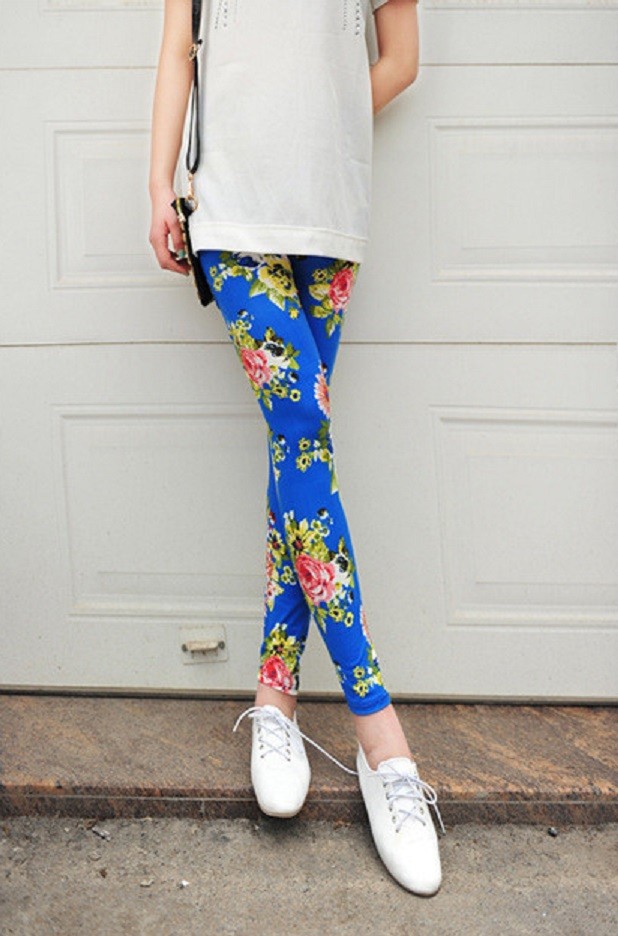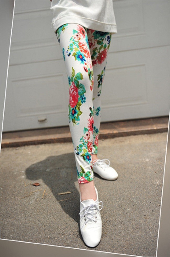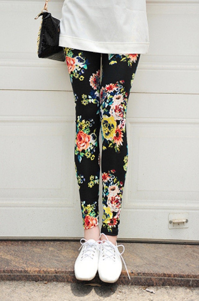 Leggings femininas estilosas com flores J2415