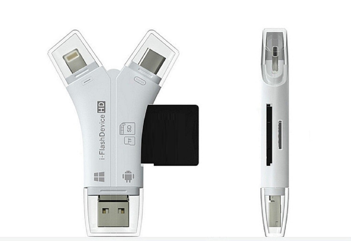 Conectores: USB (macho), Micro USB (macho), USB-C (macho), Lightning (macho), leitor de cartões SD/micro SD