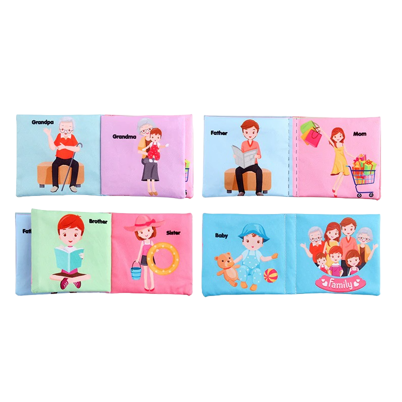 O livro de tecido para praticar inglês foi desenvolvido com o objetivo de ajudar bebés e crianças mais novas na aprendizagem do inglês. É especialmente desenhado a pensar na família. Graças às suas dimensões de 10 × 10 cm e ao material suave, encaixa perfeitamente nas pequenas mãos.