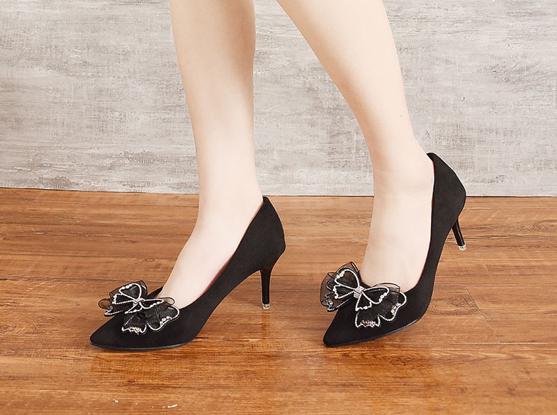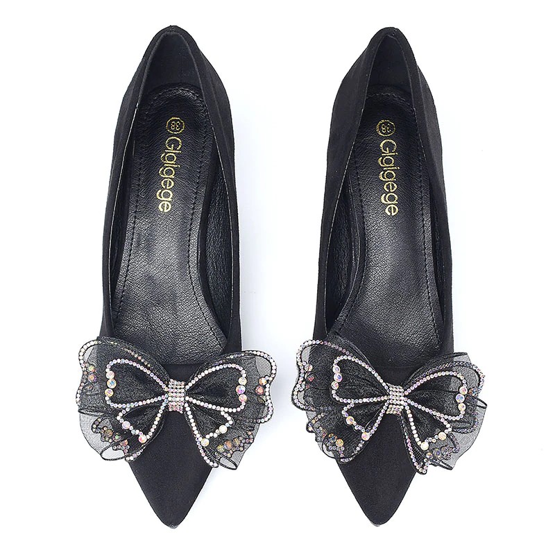 Página inicial Página inicial Calçado Calçado de mulher Sapatos de salto de mulher Lodiças de senhora luxuosas decoradas com laço J1980