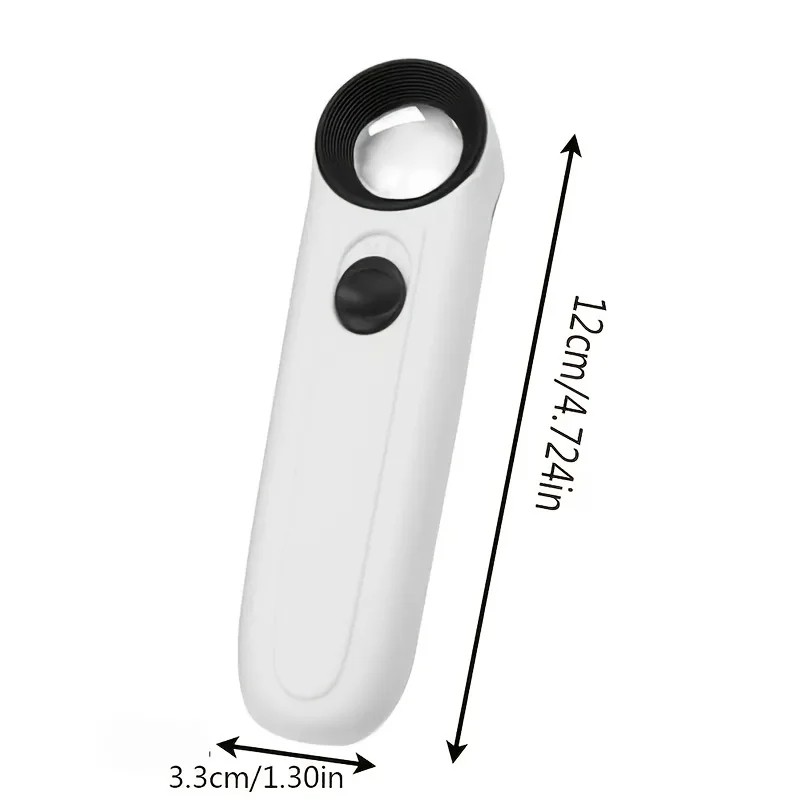 Lupa manual com iluminação LED 40x Aumento para examinar detalhes Joias minerais jade moedas impressão eletrónica 12 x 3,3 cm
