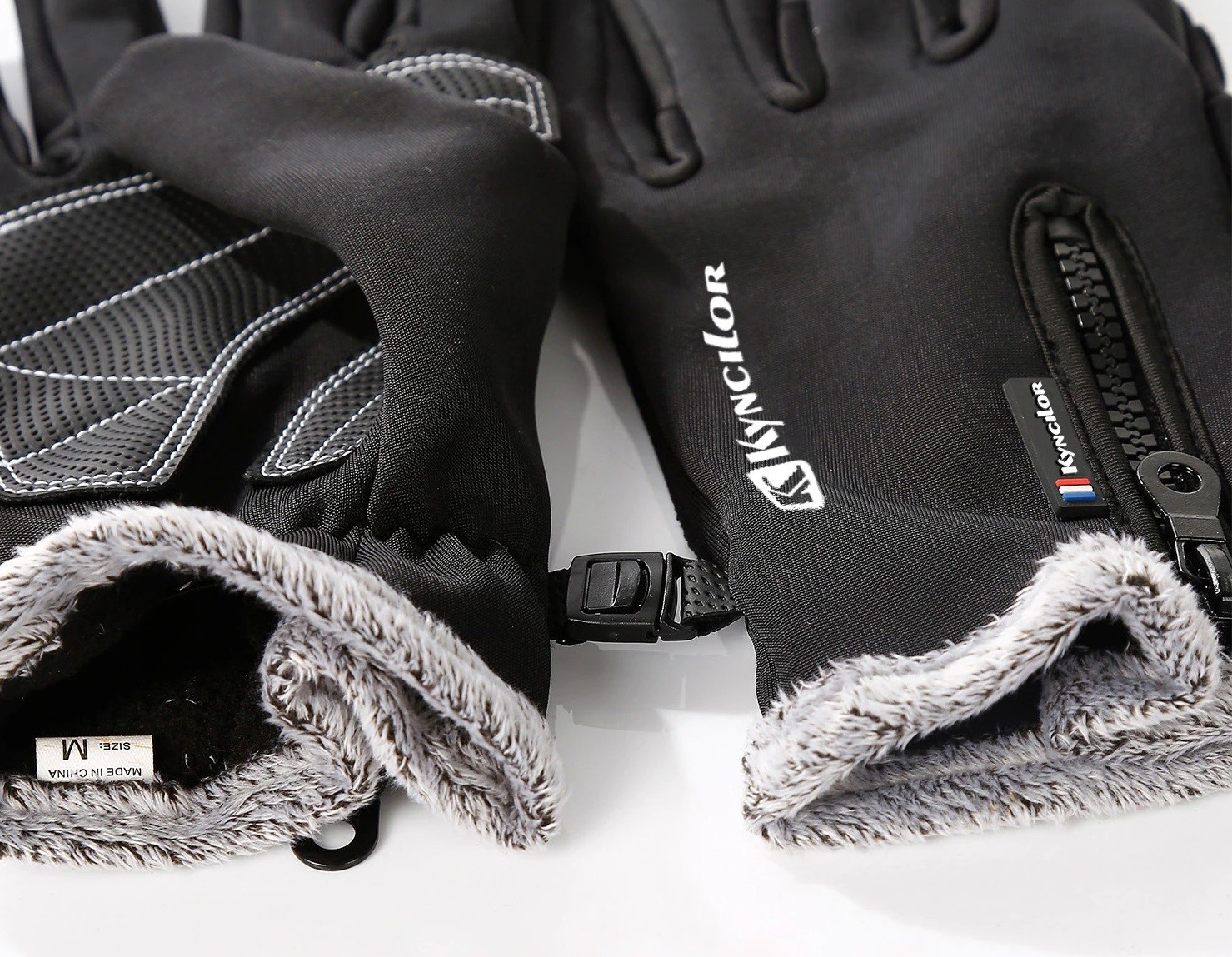 Luvas de ciclismo de inverno com forro. Antiderrapantes e à prova de água. Proporcionam um melhor agarre e mantêm as mãos quentes no inverno. Protegem contra escoriações em quedas. Fecho fácil com zíper. As luvas também permitem o controlo de ecrãs tácteis.
