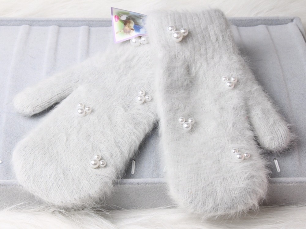 Luvas de dedo de senhora peludas com pérolas J816