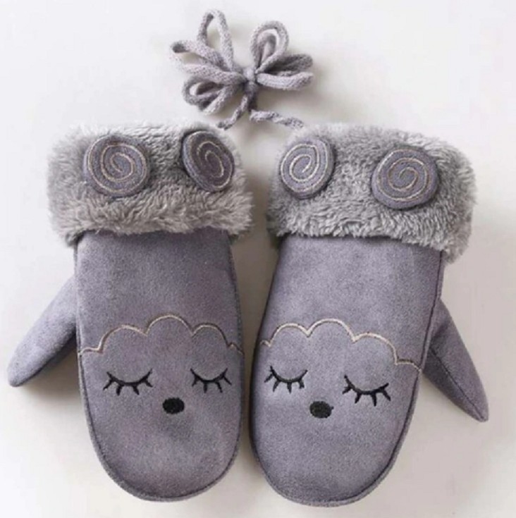 Luvas de dedo maravilhosas e quentes com bordado de ovelha.