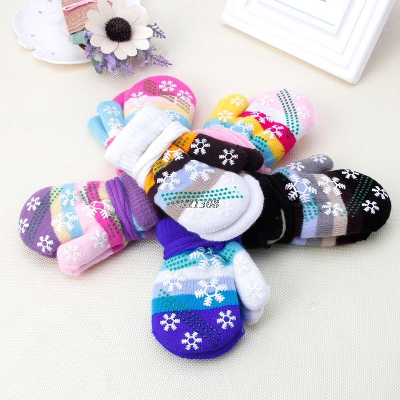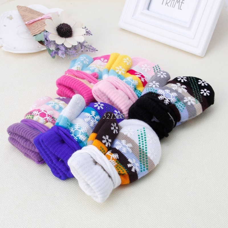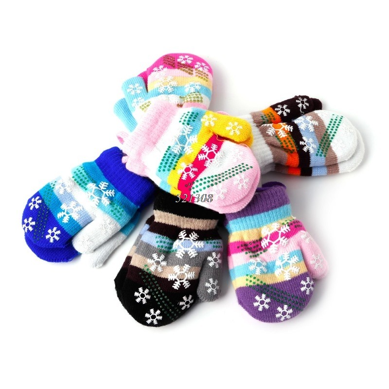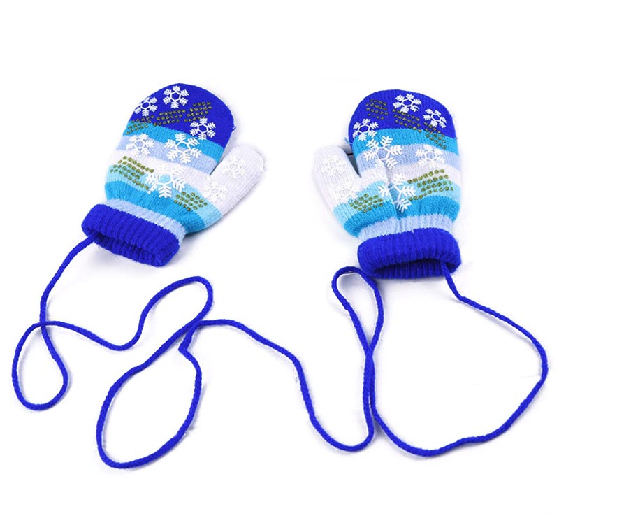 Luvas de dedo para crianças com estampado de flocos de neve.