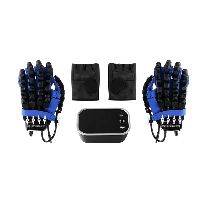 Este sistema de reabilitação completo foi concebido para a recuperação eficaz da mobilidade dos dedos e da mão após lesões, operações ou problemas neurológicos. As luvas robóticas utilizam uma unidade de controlo inteligente com ecrã e alimentação USB, que assegura um exercício preciso e fluido. Graças às duas luvas para treino ativo e duas imitações da mão, pode realizar exercícios simétricos e monitorizar o progresso da reabilitação em tempo real. Ideais para terapia em casa e para utilização em instituições de saúde.