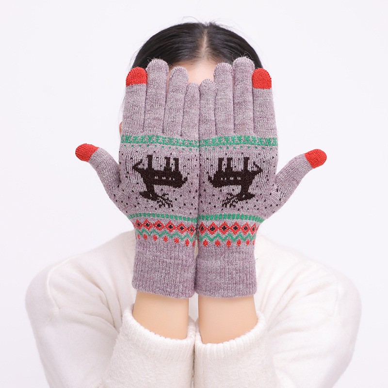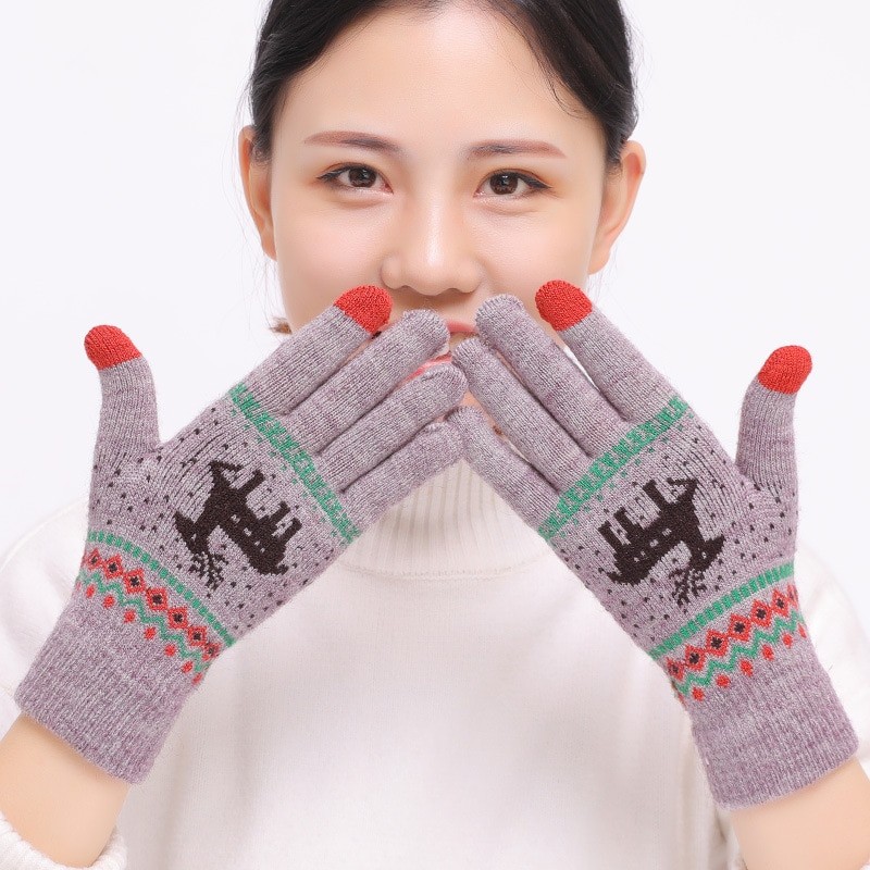 Luvas femininas finamente tricotadas com ponta dos dedos sensível ao toque.