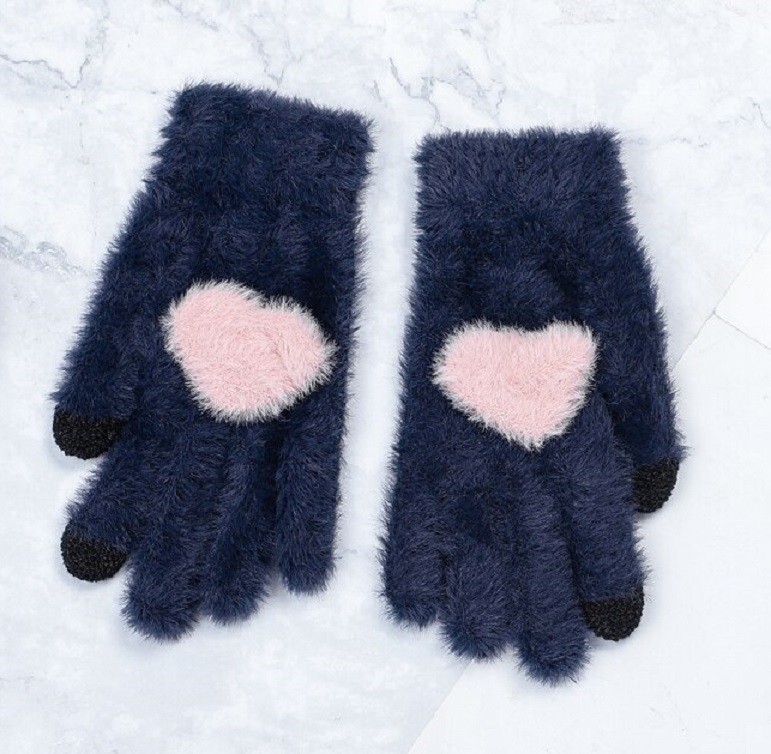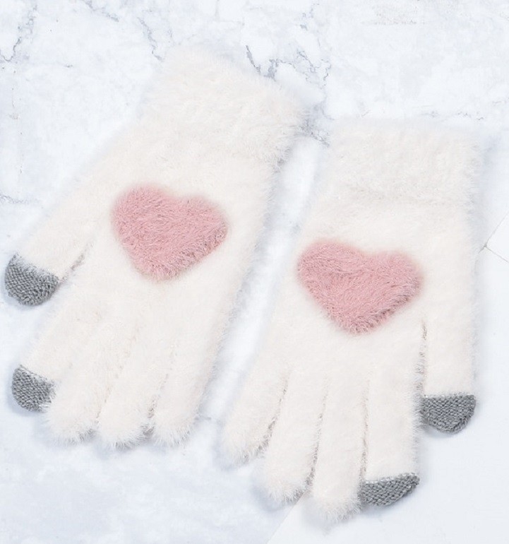 Luvas de inverno femininas com coração