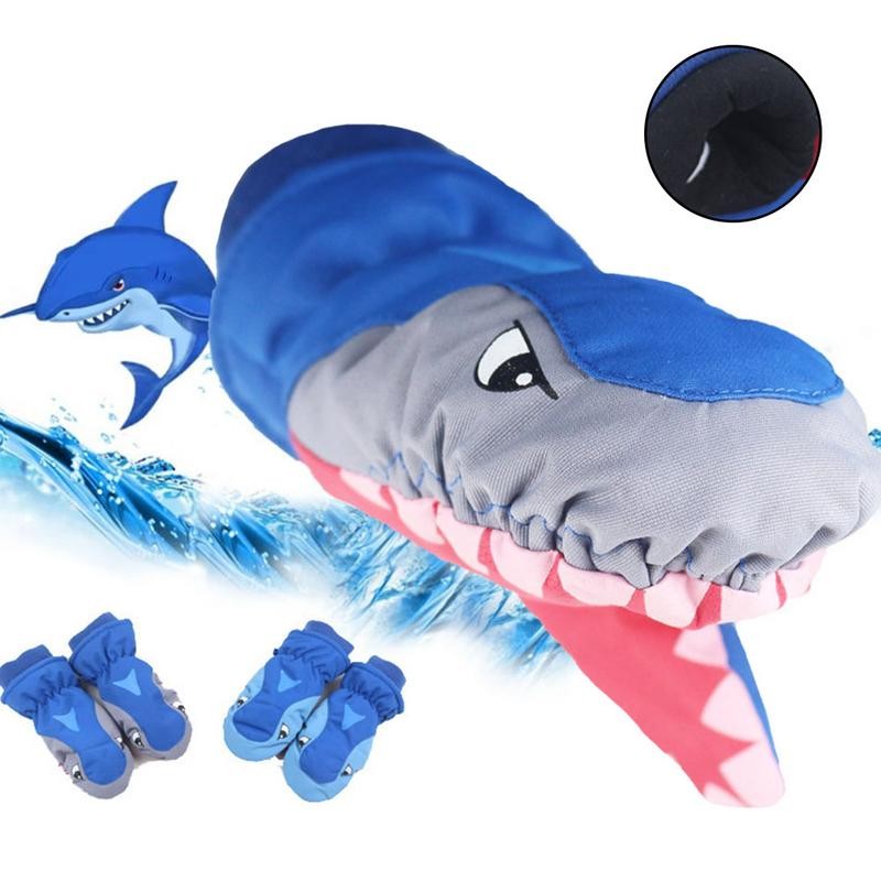 Luvas de inverno engraçadas para crianças com motivo de tubarão.