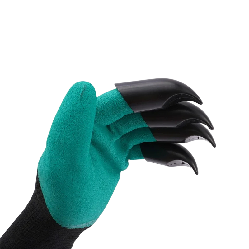 Estas luvas de jardinagem verdes com garras são a solução perfeita para quem deseja simplificar o trabalho no jardim. Graças às garras de plástico integradas nos dedos de uma mão, pode facilmente escavar, plantar, desherbar e semear sem a necessidade de ferramentas adicionais. O material impermeável protege as suas mãos da humidade e da sujidade, permitindo-lhe trabalhar confortavelmente mesmo em solo húmido. As luvas têm um tamanho universal e, devido ao material elástico, adaptam-se facilmente à maioria das mãos.