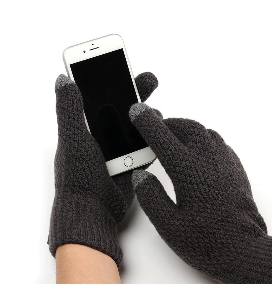 Luvas de malha bonitas, que aquecem perfeitamente as suas mãos. Com estas luvas é possível controlar ecrãs tácteis.