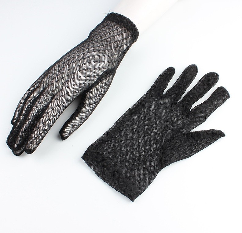 Luvas elegantes para senhora em material de malha transparente.