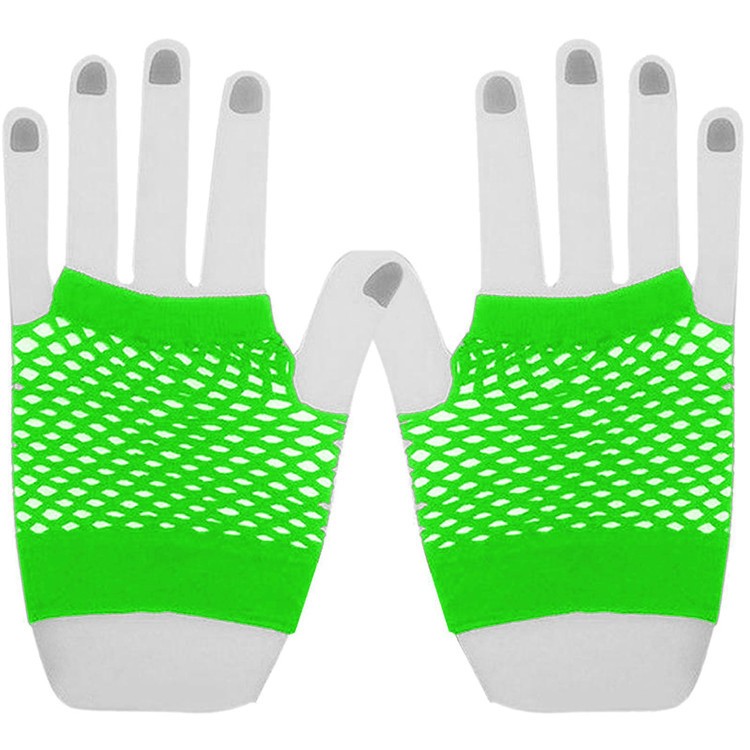 Luvas sem dedos em material elástico de malha em cores brilhantes.