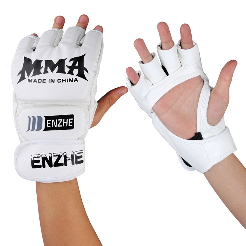 Estas luvas de couro com polegar parcialmente aberto são destinadas tanto para treino como para combate em MMA.