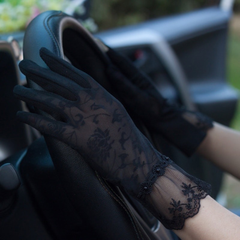 Luvas elegantes para mulheres feitas de material transparente decorado com renda.