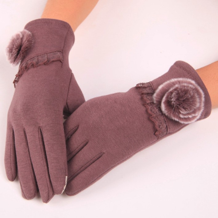 Luvas femininas com pompom J822