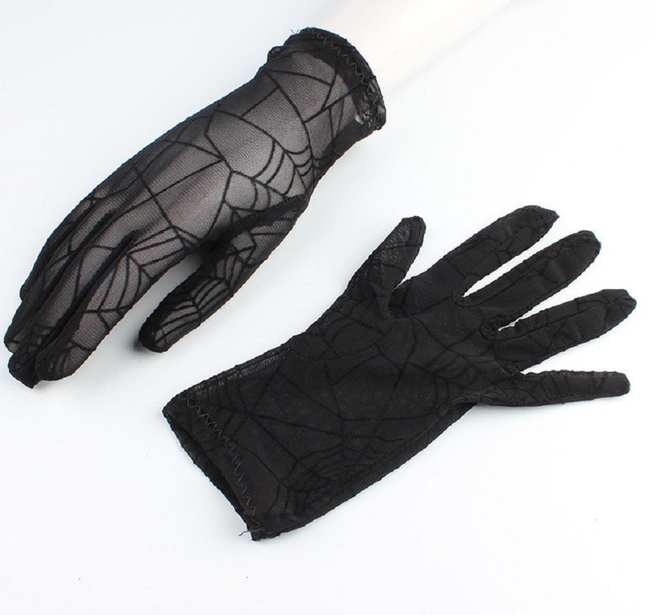 Luvas femininas com teias de aranha