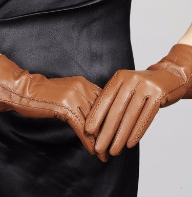 Luvas femininas em pele genuína J824