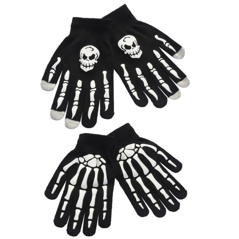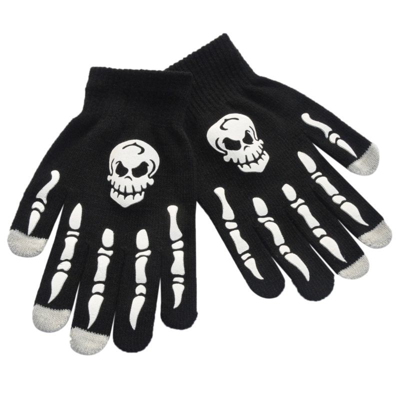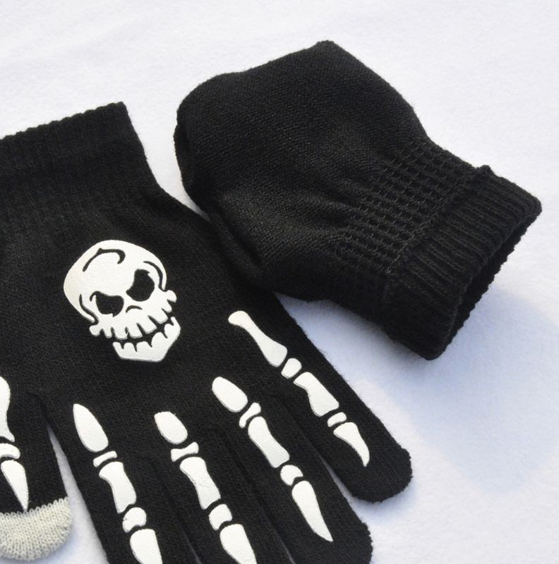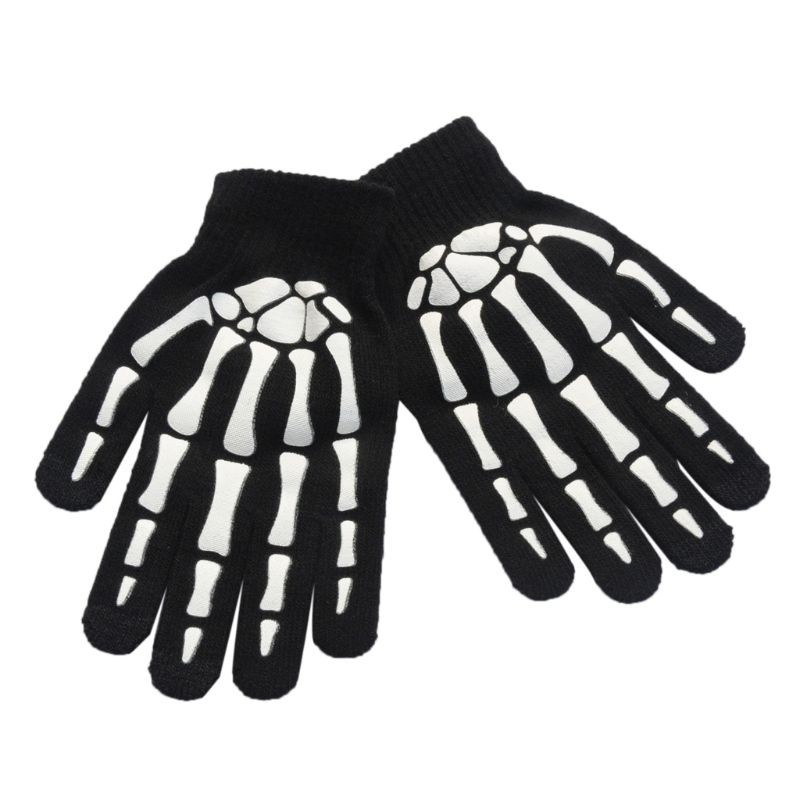 Luvas pretas femininas com ossos