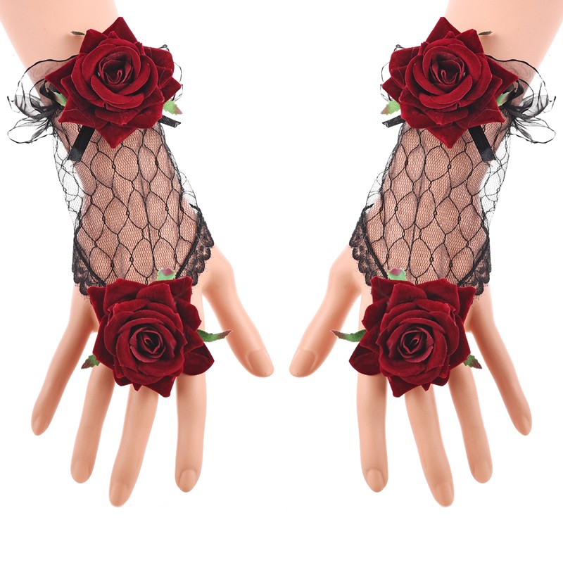 Luvas sem dedos femininas com rosas