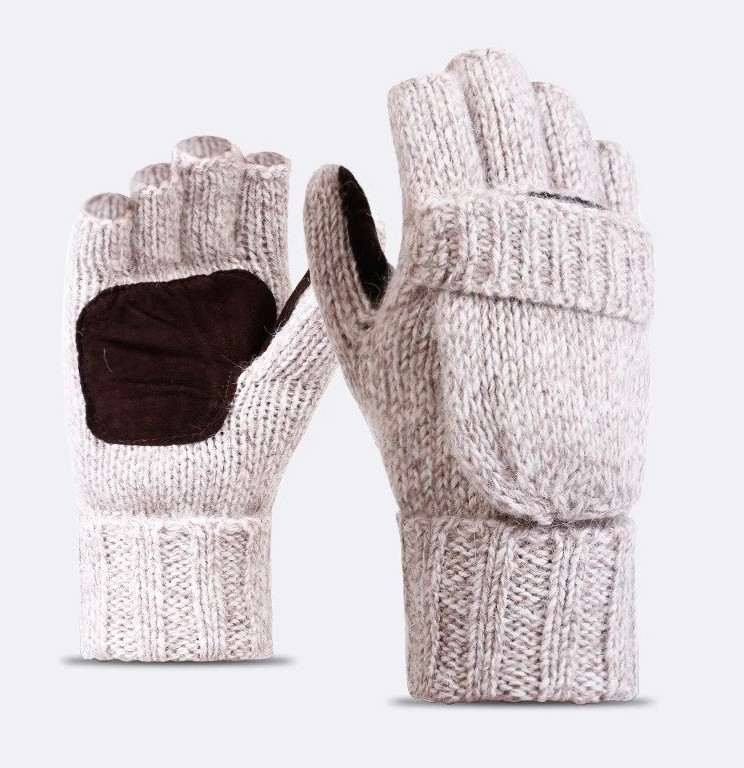 Estas luvas de lã são 2 em 1 - pode usá-las como luvas de dedo ou como luvas sem dedos.