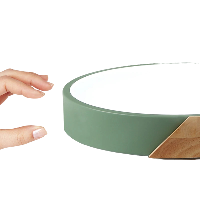 • Características: instalação fácil, minimalista, moderno, circular, com elemento em madeira, luz LED