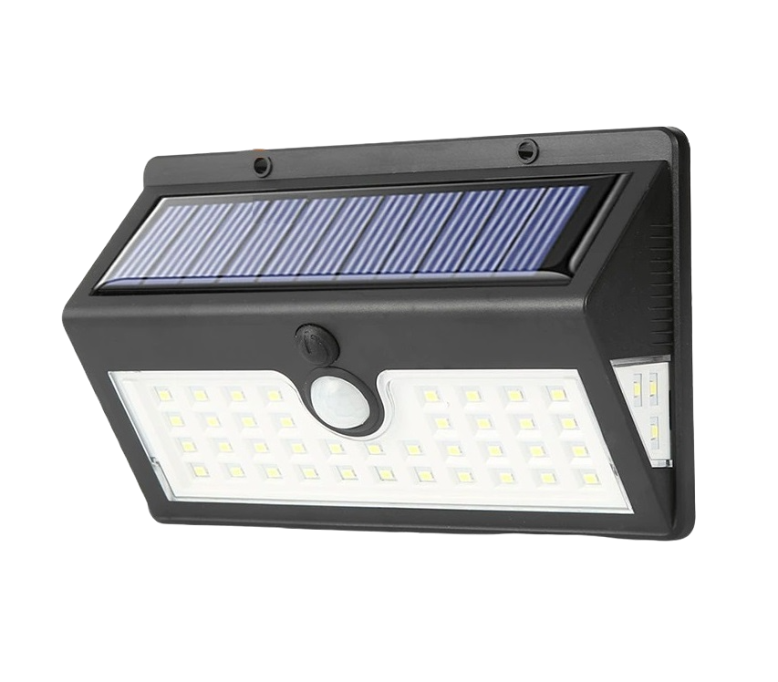 Luz que é fabricada com material altamente resistente. Tem 44 LEDs. Serve como decoração para terraço. A luz liga-se automaticamente durante a noite, se detetar movimento humano. É carregada com a luz solar.