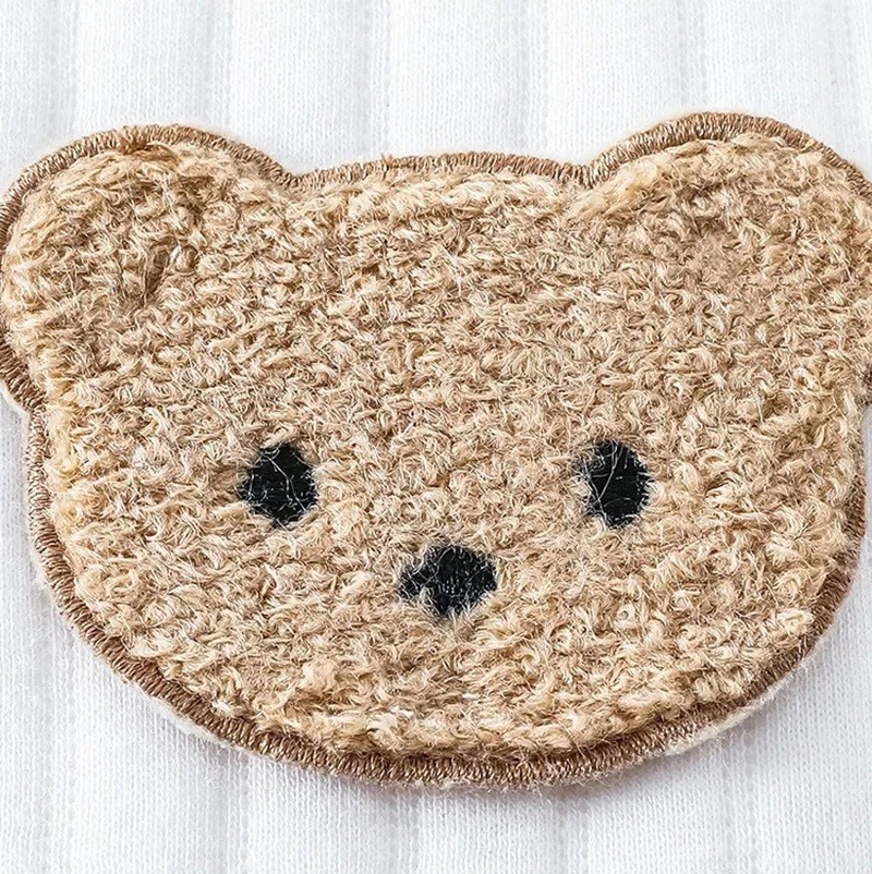 - Motivo de urso no peito com duas laçarotes decorativas