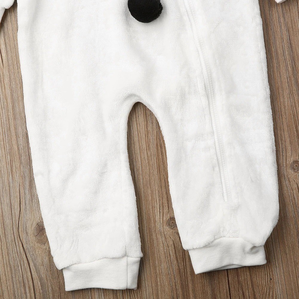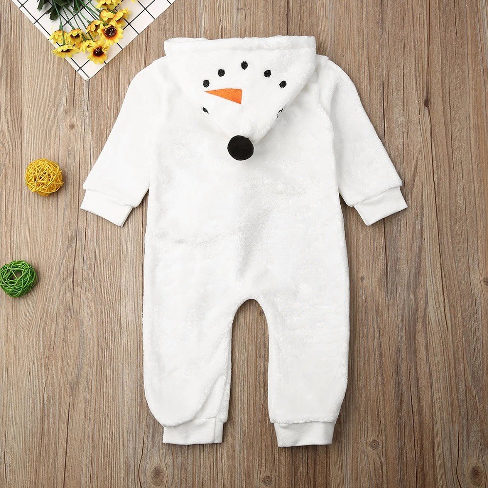 Macacão com motivo natalício de boneco de neve. Material suave e quente.
