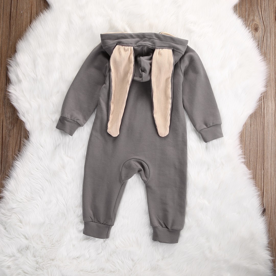 Bonito macacão de bebé com orelhas como um pequeno coelhinho.
