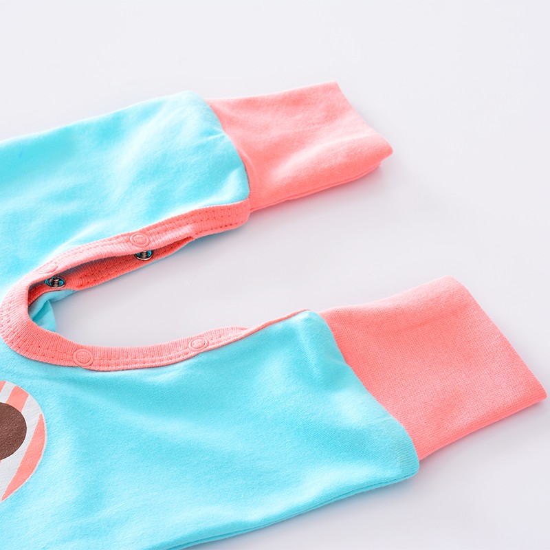 O macacão é feito de algodão confortável, por isso o seu bebé estará como em algodão.