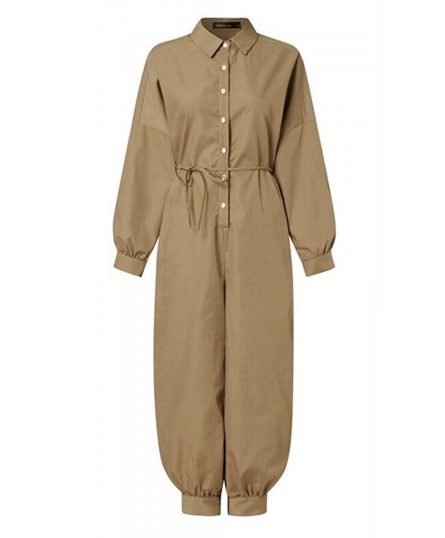 Macacão de camisa feminino com mangas longas