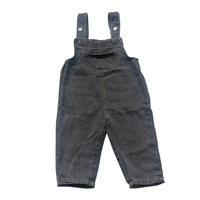Macacão de ganga para bebés em algodão Macacão liso para crianças pequenas com bolsinho e botões Macacão unissexo estiloso para meninos e meninas