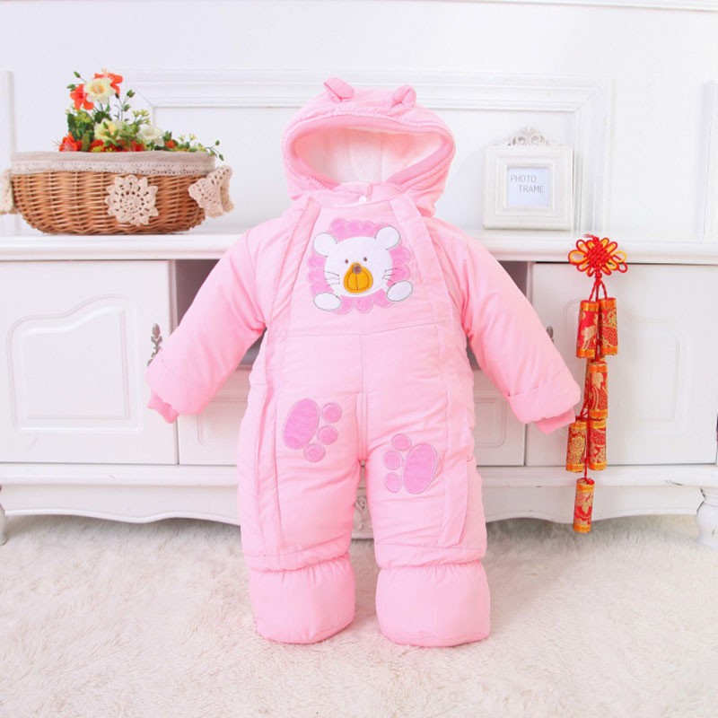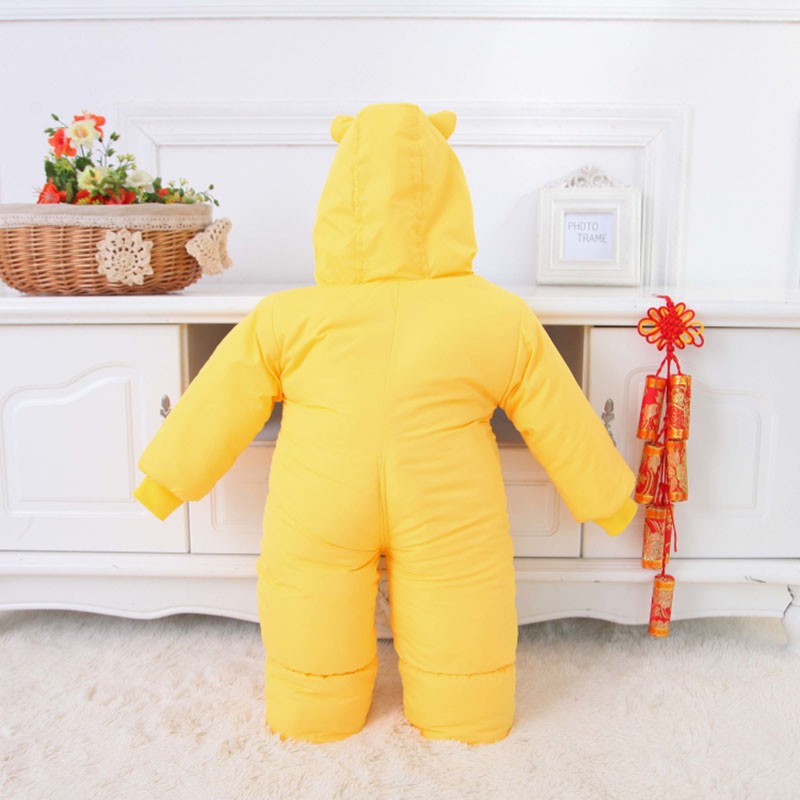 O macacão de inverno para bebé com estampado de urso é a melhor escolha para o inverno para o seu bebé.