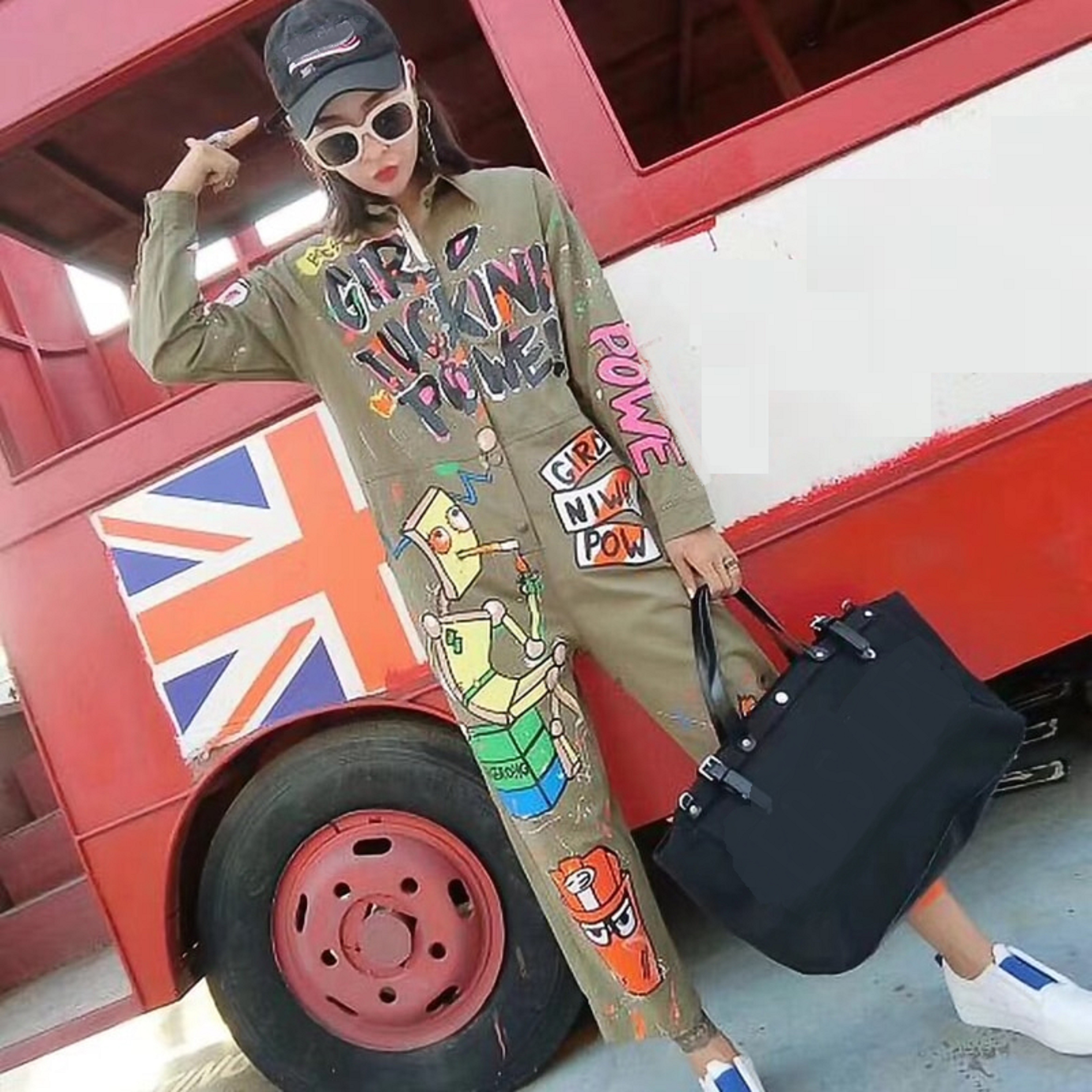 Macacão feminino com imagens e inscrições A2046