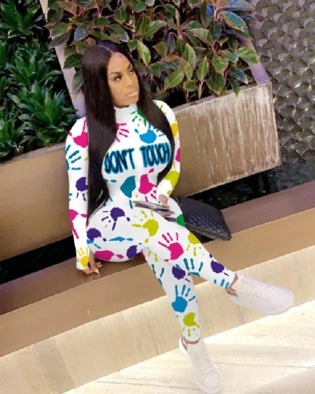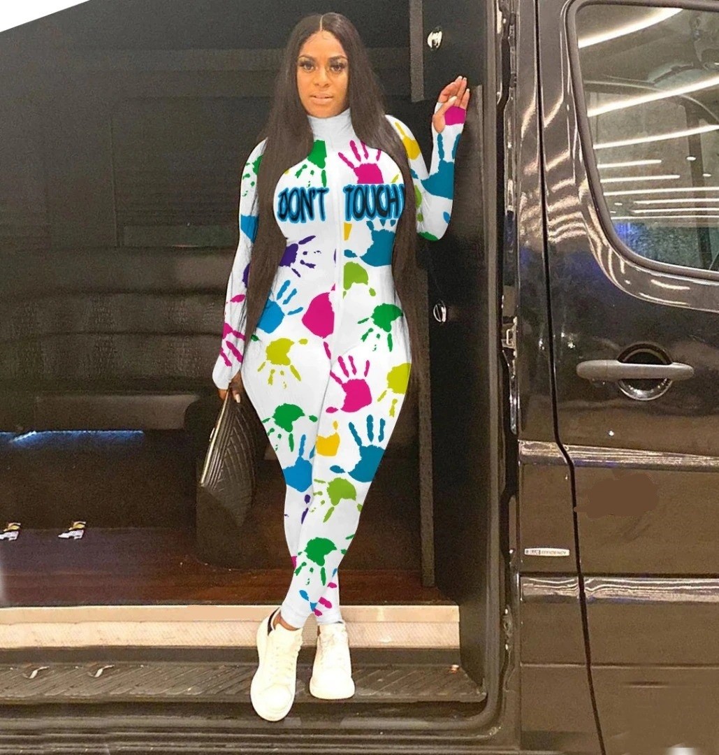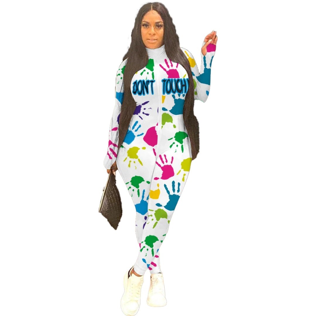 Macacão feminino com padrão de mãos