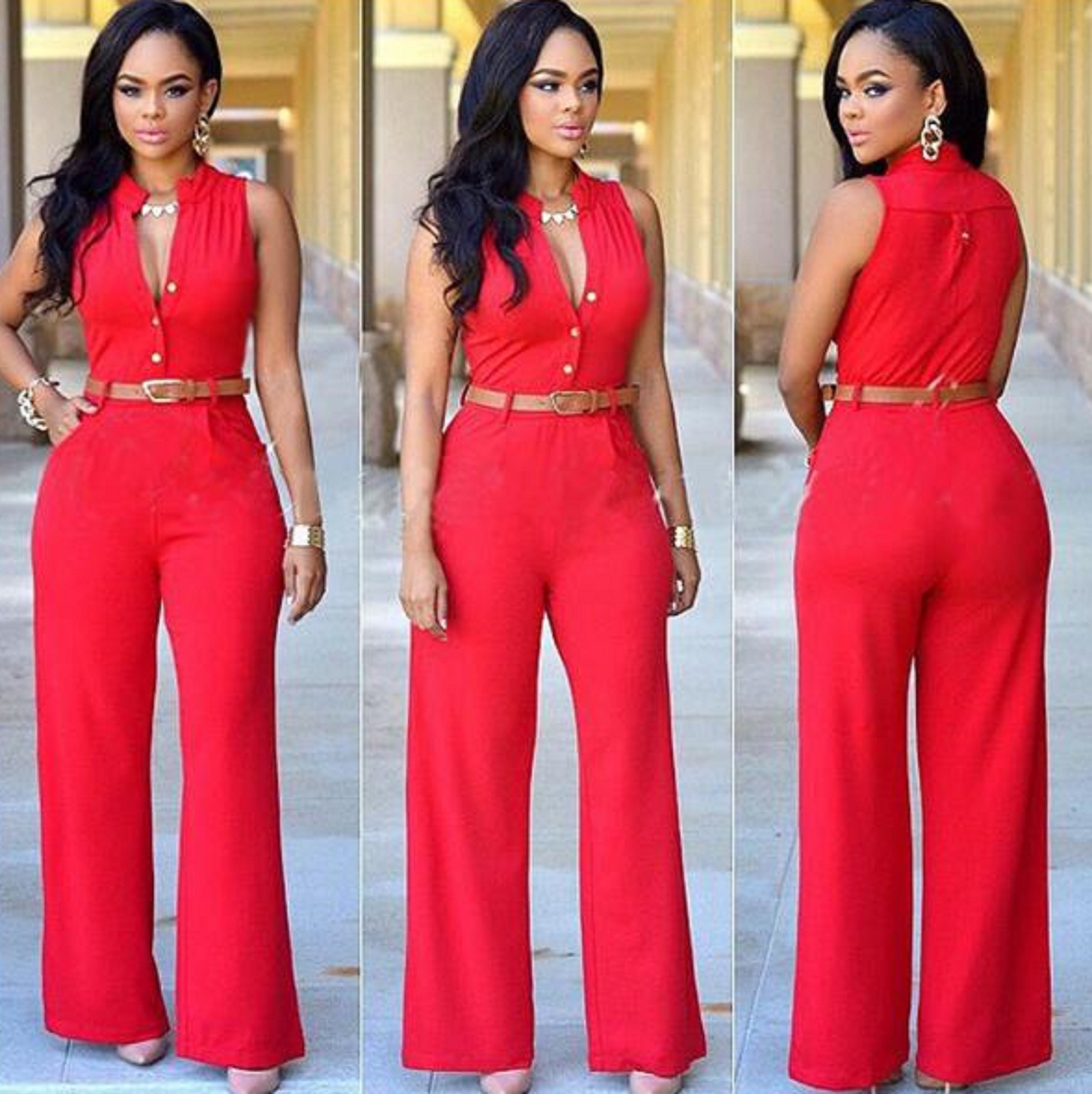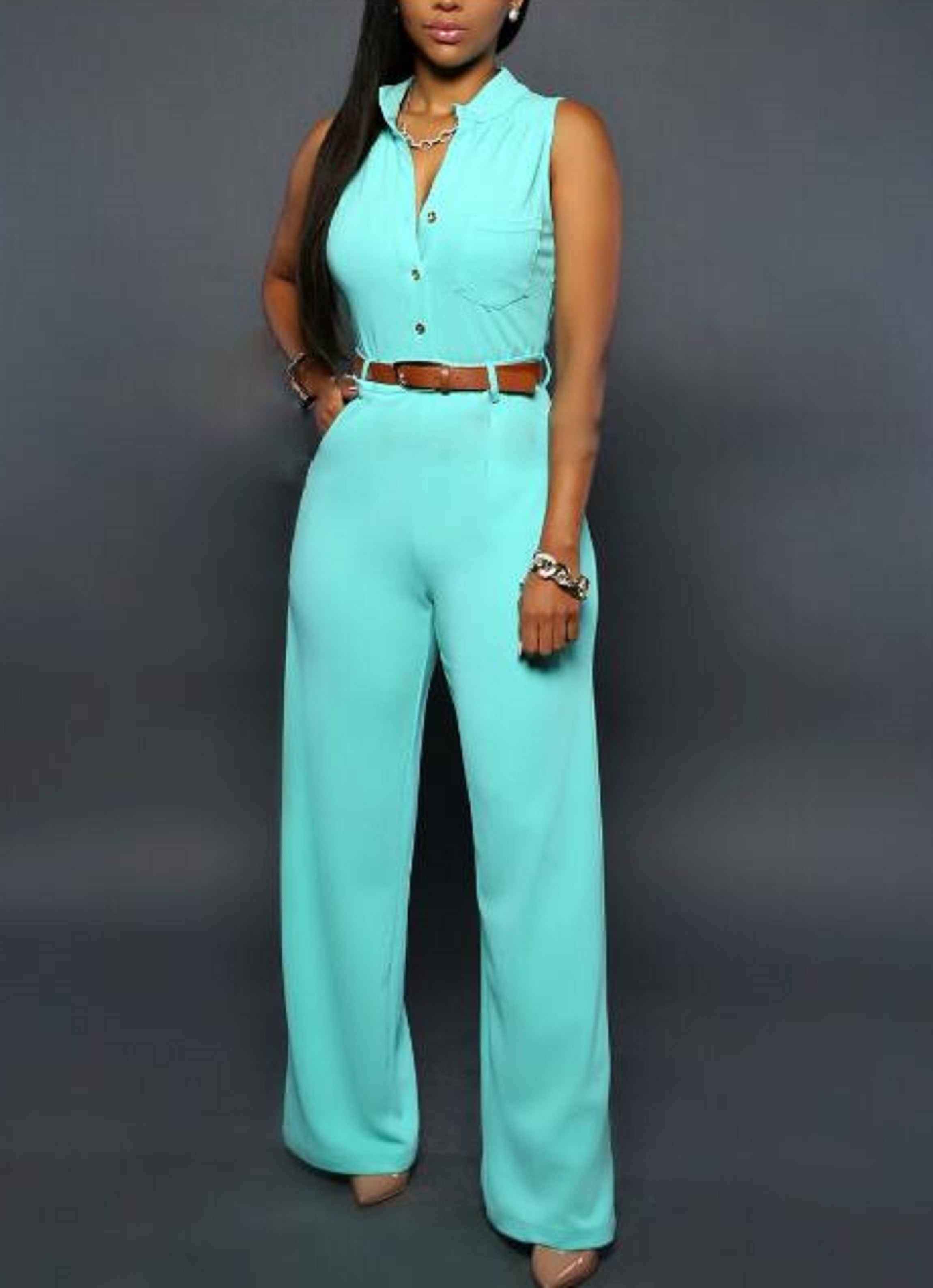 Macacão feminino sem mangas com cinto