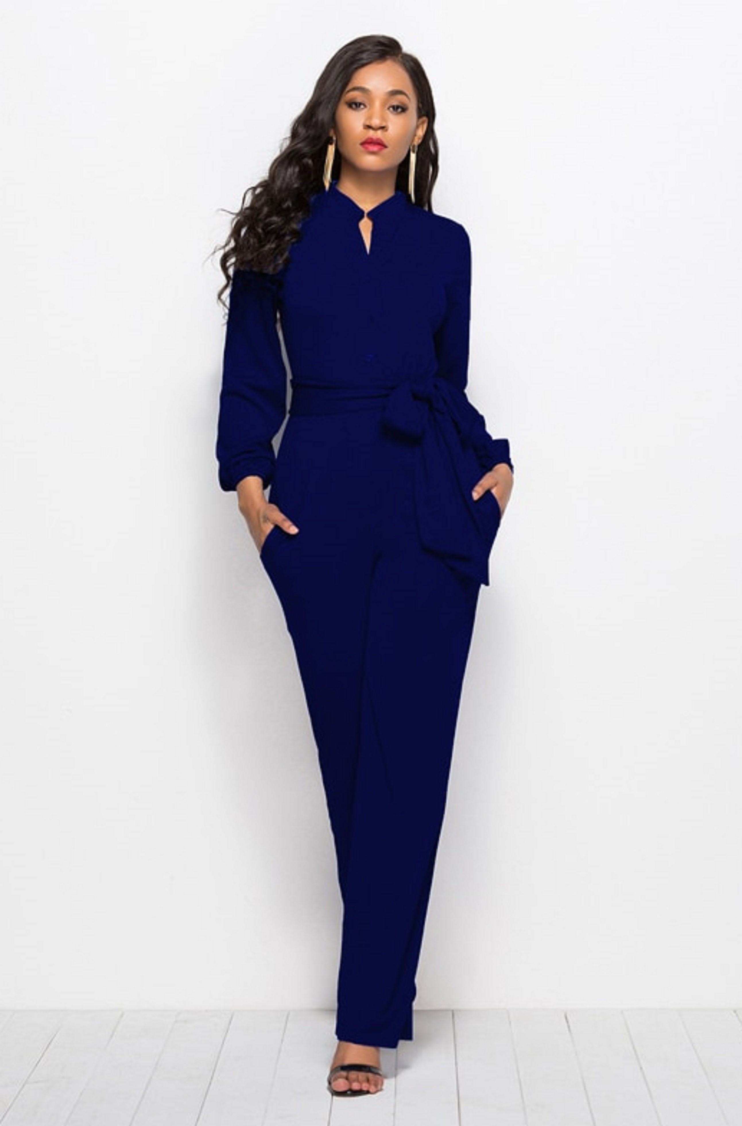 Macacão longo feminino com laço