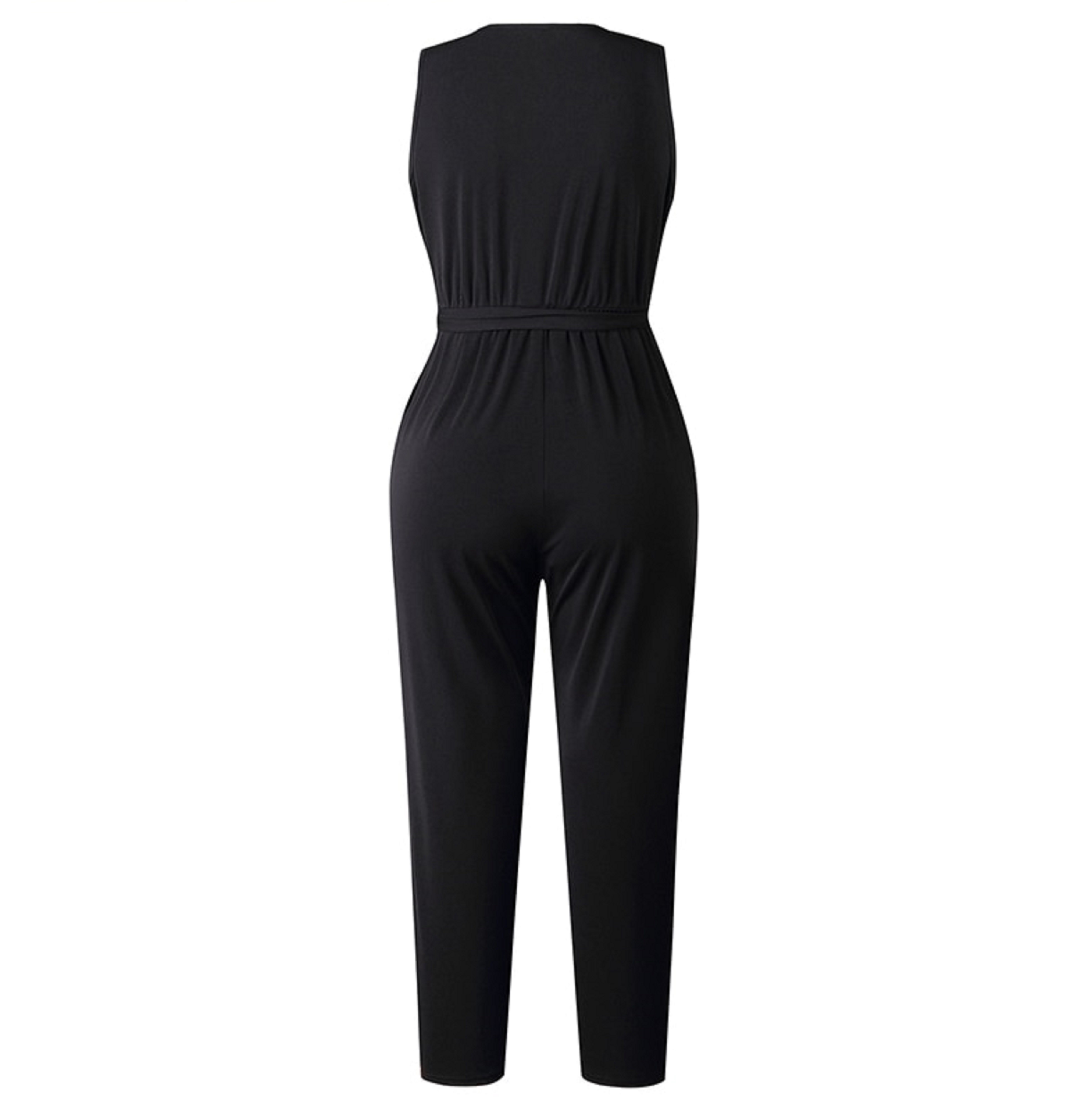 Macacão preto feminino com atilho na cintura