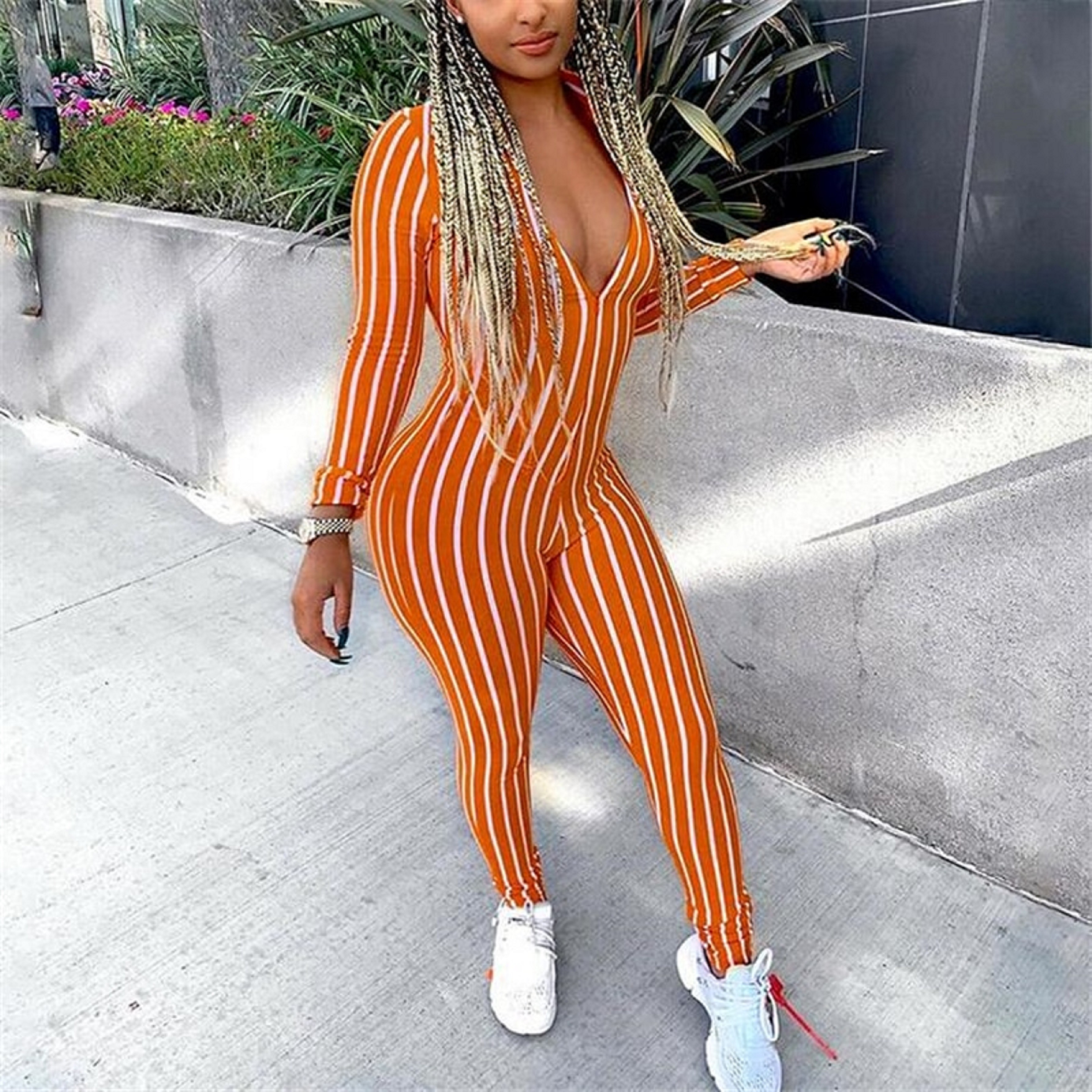 Macacão riscado feminino