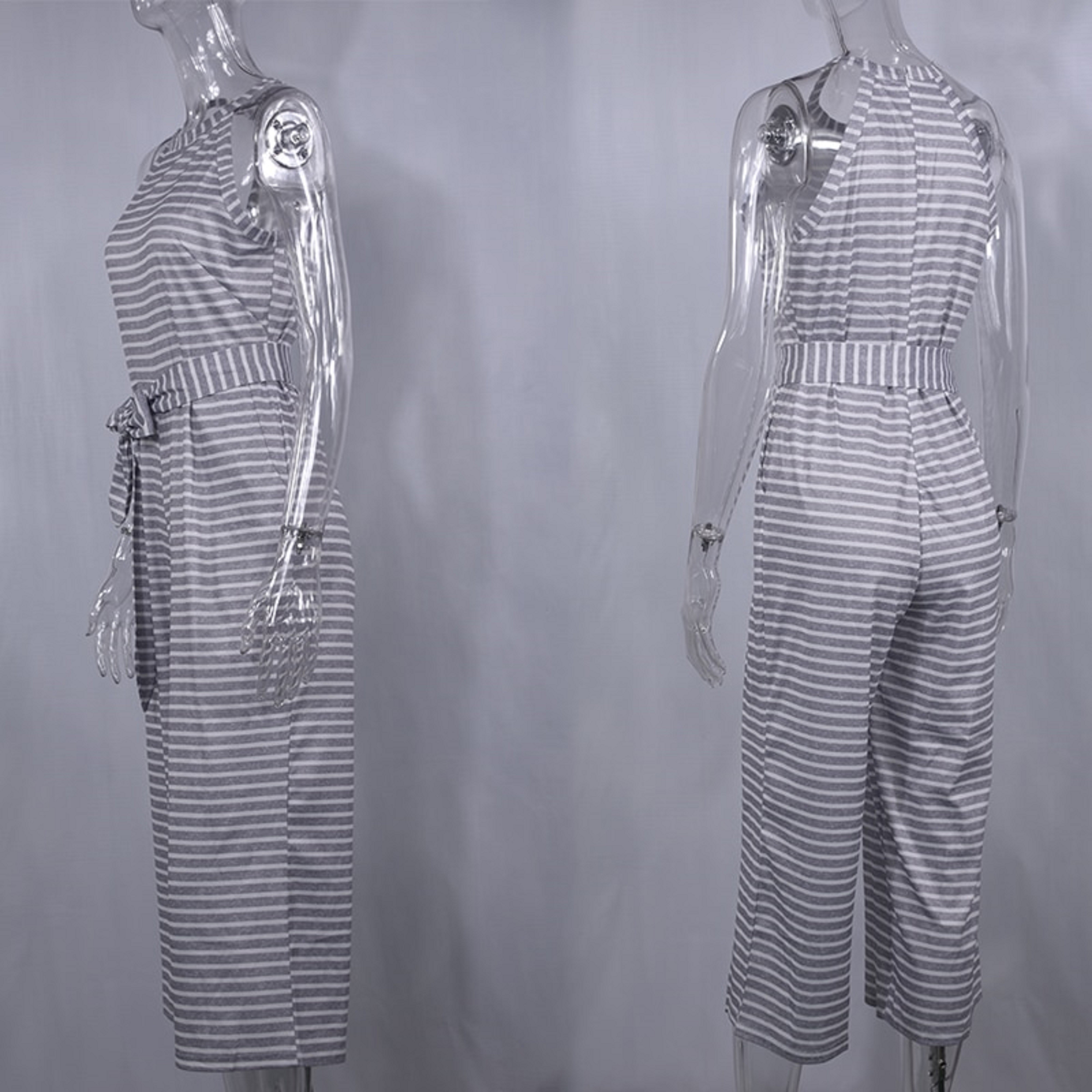 Macacão riscado feminino com laço na cintura
