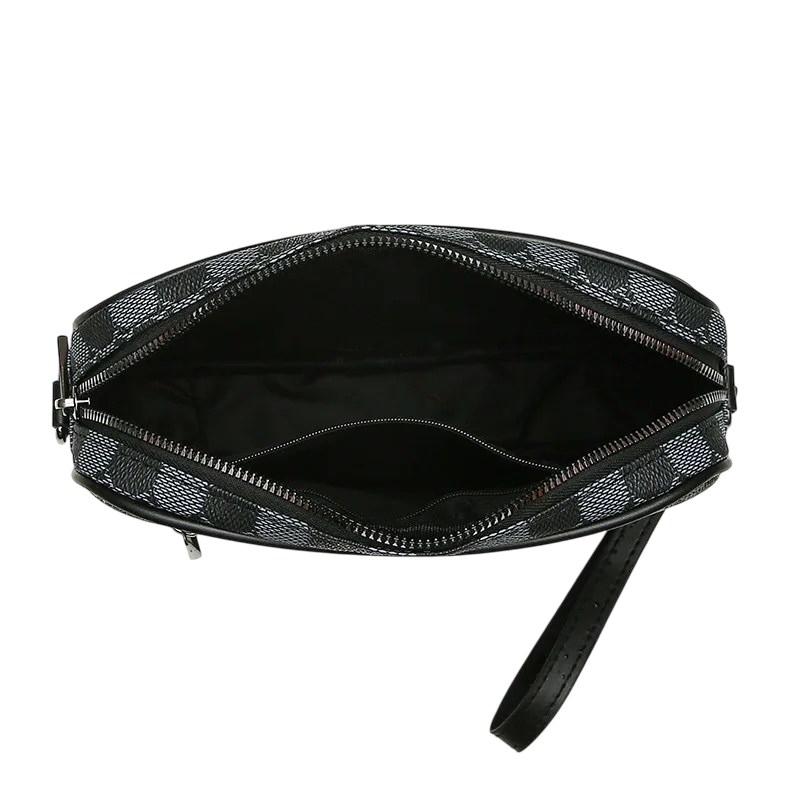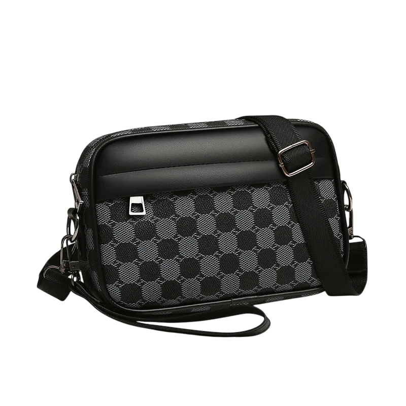 Mala crossbody elegante para homens em pele sintética com padrão moderno, ideal para o telefone, documentos e outros essenciais durante viagens ou no trabalho. Descrição completa