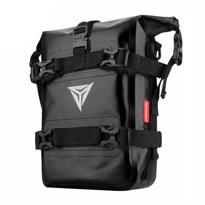 Mala de moto resistente para quadro de queda com tecido PVC à prova de água para armazenamento seguro de ferramentas e pequenos itens durante a condução, mesmo com chuva. Descrição completa