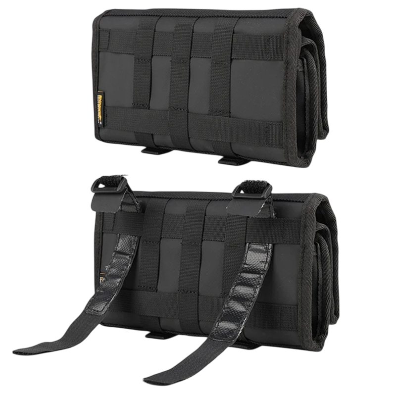 Esta mala de moto dobrável para ferramentas é a solução ideal para qualquer motociclista que precisa ter as suas ferramentas sempre à mão. Graças ao seu inteligente design enrolável, oferece bastante espaço quando desdobrada (50×20 cm), mas ocupa o mínimo de espaço quando dobrada (22×12×1,5 cm). Fabricada em material resistente, proporciona proteção fiável para diversos tipos de ferramentas durante a condução. Graças à prática disposição dos compartimentos internos, terá tudo organizado. A mala é destinada a montagem na moto como acessório lateral ou de selim e é facilmente transportável à mão.