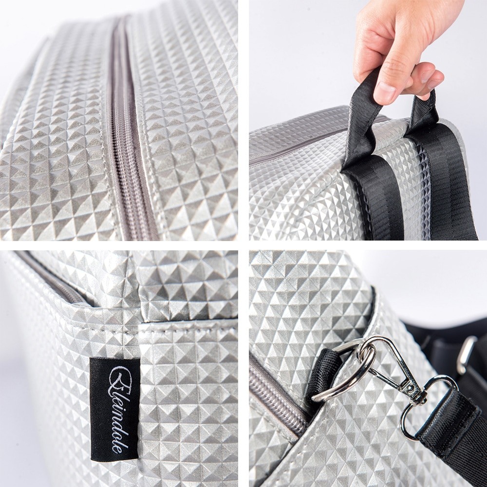 Graças às alças na parte de trás, pode ser usada também como mochila.